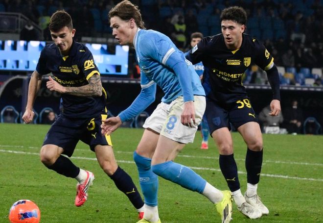 那不勒斯排出3421阵型。霍伊伦顶在最前面。波利塔诺和诺阿-朗联袂出击。马佐基、洛博特卡、麦克托米奈和奥利韦拉4中场首发出战。迪洛伦佐、拉赫马尼和布翁焦尔诺搭档3后卫。瓦尼亚-米林科维奇-萨维奇担任首发门将。那不勒斯的首发阵容总身价2.48亿欧元,而帕尔马的首发阵容总身价只有6330万欧元。